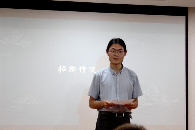 首先,副社长杜博文介绍了本年度招新情况,第42届春秋学社共吸纳新成员50人,除历史学院外,有来自励耘人文科学实验班、英语+历史双学位等不同院系和专业的多位同学。随后,到场嘉宾上台为新老社员致辞。