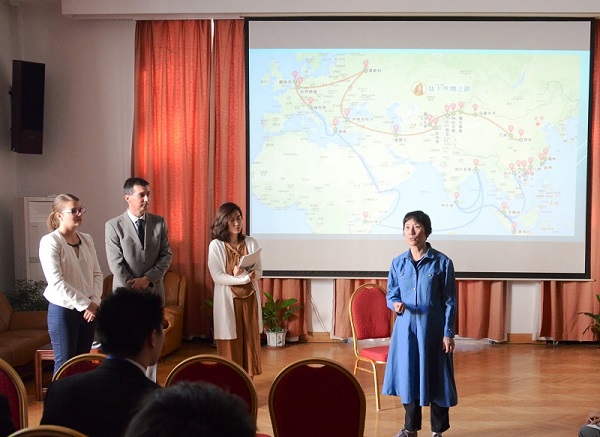 在使馆会议厅内,齐丽大使首先致欢迎辞。她用流利的汉语对我院师生的到来表示热烈欢迎,并希望此行能够加深同学们对于匈牙利的认识,使同学们感受到匈牙利文化的魅力,留下美好而深刻的印象。
