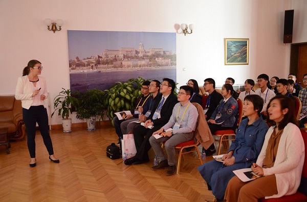 随后,匈牙利文化中心文化干事尹曼妮女士(ILDIKO Nagy)从几张优美的风景照入手,全方位地为同学们展示了匈牙利的国家概况、风土人情,并特别介绍了布达佩斯市古老而富有特色的建筑与造型奇特的公共设施。此外,她还对匈牙利的美食和科技成就等做了详细说明。通过精彩而富有艺术气息的视频,尹曼妮女士向参观者呈现出一个蕴含着古典美学气息,却又不失近代科技之先进性的国度。使馆参赞魏菜士先生则和同学们谈论起中匈关系及中国与中东欧国家的合作。他首先回顾了中匈在历史上源远流长的经济与文化交往,介绍了近年来,特别是“一带一路”战略实施和中国-中东欧国家“16+1”合作机制建立以来,两国关系新的变化和发展,展望了中匈合作建设匈塞铁路的前景。