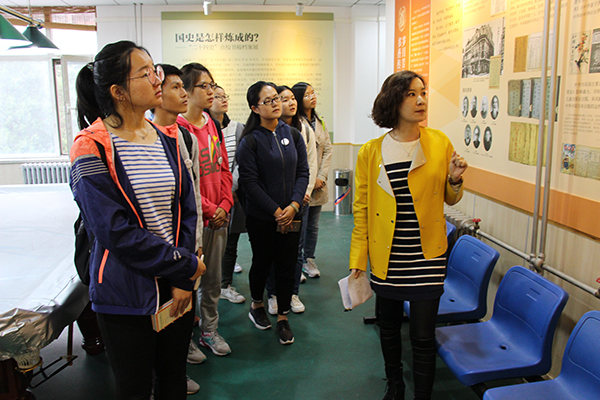 李忠良老师首先为大家介绍了中华书局创始人陆费逵先生的生平,随后带领大家参观了书局一楼陈列的精品书目,并详细介绍了书局近十年的出版状况,同时向大家推荐了书局近些年来的畅销作品。走过陈列着一版一次珍贵书影的走廊,李忠良老师带着同学们来到了中华书局局史展览处。在这里,刘照旭老师结合展板,悉心地为各位同学讲解了中华书局一百多年来的发展历程,并重点介绍了点校本“二十四史”及《清史稿》的修订工作概况,让同学们对于中华书局有了更深的了解。随后,大家移步中华书局的图书馆,在这里,图书馆的负责老师带领同学们参观了珍贵典籍的收藏书柜。各位得以近距离接触《文史知识》第一册、《日本宫内厅书陵部藏宋元版汉籍选刊》《近代中国史料丛刊》以及《四库全书》等珍贵文献。