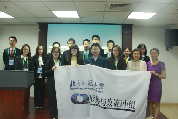6月19日晚,历史学院“形势与政策”小组2015-2016学年总结大会在主楼600会议室召开。北京师范大学历史学院院长杨共乐老师,本科生工作处副处长隋璐璐老师,历史学院分党委副书记王卓凯老师,历史学院分团委书记胡小溪老师,历史学院专职辅导员李力老师出席本次会议。历史学院分团委、学生会、春秋学社、春秋人文报等学生团体的负责人,以及清华大学学生海峡两岸交流协会、外交学院时事研究会、对外经济贸易大学国际关系协会负责人应邀参加会议。往届小组成员江天岳、周天一、宋文经、陈鸣悦、孙嘉毅、于斯寒、赵雨佳、蔡子涵、杨宇辰、莫凡、王静竹、侯美、杨培艺等也应邀参加会议。 会上,第九届“形势与政策”小组组长张俊毅作了《北京师范大学历史学院“形势与政策”小组2015-2016年度工作报告》。《报告》全面总结了“形势与政策”小组2015-2016学年的各项工作,分为团队建设、校内授课、校外实践、校际交流、国际交流、品牌活动、舆论关注七个方面。纵观小组一年以来的工作,集体学习、使馆交流等常规活动丰富多彩,稳步开展。值得一提的是,2015年11月小组成员赴法国驻华使馆吊唁巴黎恐怖袭击遇难者、2016年1月和清华大学、北京大学、南开大学等三所高校的四个兄弟社团共同撰写《大陆青年致台湾地区领导人选举候选人的公开信》,受到媒体广泛报道,充分彰显出当代大学生对时事的关注,表现了青年学子的情怀和担当,产生了积极的社会影响。《报告》指出,“形势与政策”小组在学校和历史学院的悉心指导与大力支持下,继续推进体制机制创新和可持续发展,强化团队文化建设和品牌认同,探索“第二课堂”延展和“第二集体”建设同向同行,取得显著成效。 第九届“形势与政策”小组常务副组长王帅捷、副组长朱丁睿为小组新晋组员和院系联络员颁发胸牌,秘书长彭代琪格为代表北师大参加第四届全国高校外交谈判大赛校际赛并获得三方谈判单场冠军的田奥凡、王栋、张颖同学,参加第十二届“外交之星”礼仪风采大赛并获得决赛亚军的贺天行、赵文博、刘畅、徐子钧同学,以及参加第五届京津高校国际关系史知识竞赛并获得决赛冠军的张弘毅、李博轩、范沛沛同学颁发纪念光盘。