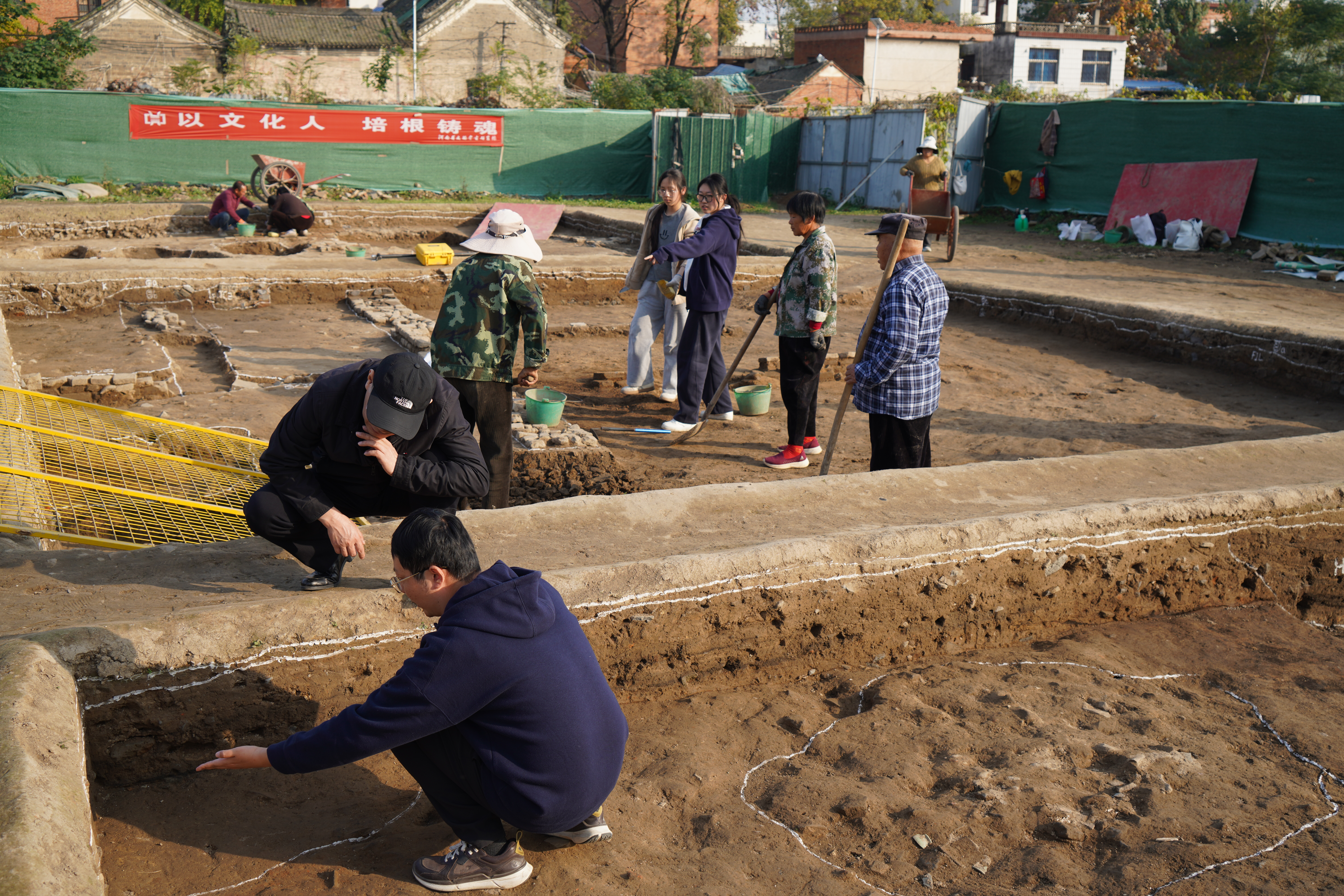 2025年11月13日,北京师范大学历史学院负责人赴河南省邓州市邓州古城考古工地,慰问正在开展田野考古实习的历史学院2023级考古学专业师生并召开2025年田野考古实习座谈会。北京师范大学历史学院院长刘林海,河南省文物考古研究院副院长魏兴涛,河南省邓州市委常委、宣传部部长、副市长刘红梅,北京师范大学历史学院党委副书记赵云慧,邓州市文化广电和旅游局局长丁如意,北京师范大学历史学院考古文博系主任杜水生,河南省文物考古研究院汉唐宋考古研究中心主任、邓州工作站负责人包伟柯,邓州市文保中心主任张龙飞,河南省文物考古研究院助理馆员王逸雯、梁丁元、杨桐,北京师范大学田野考古实习带队教师张保卿、刘岩,以及2023级全体考古学本科生出席会议。