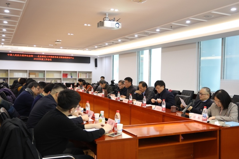 2026年1月23日,中国人民抗日战争纪念馆——北京师范大学国家革命文物协同研究中心2026年度工作会议在北京师范大学历史学院召开。中国人民抗日战争纪念馆副馆长、中心主任李志东研究员,历史学院党委书记范立双研究员、院长刘林海教授,中心主任张皓教授,中心学术委员会主任李帆教授,北京大学历史学系臧运祜教授,历史学院蒋重跃教授,马克思主义学院院长张润枝教授,科研院社科处贺利华副处长,学校基础教育发展管理部副部长黄四林教授,艺术与传媒学院甄巍教授,中国人民大学历史学院王建伟教授,历史学院党委副书记赵云慧,学校基础教育发展管理部资源办历史学科共同体学科秘书高丽丽,以及林辉峰、李小尉、孙会修、刘芳、张乐、潘若天、王涵等历史学院教师与会。会议由历史学院副院长徐畅教授主持。