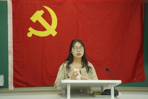 随后,学生党员代表2022级本科生杜泽慧同学进行了《志愿点亮青春,行动诠释担当》的主题宣讲。她结合担任“纪念中国人民抗日战争暨世界反法西斯战争胜利80周年纪念大会”志愿者的珍贵经历,深情讲述了从前期筹备到现场服务的点滴感悟,分享了在亲历国家盛典中获得的深刻精神洗礼。她的故事生动诠释了“奉献、友爱、互助、进步”的志愿精神,展现了历史学院青年将爱国情、强国志转化为报国行的自觉行动,其真挚的感悟与昂扬的风貌赢得了现场阵阵掌声。