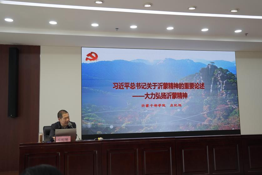 9日下午,沂蒙干部学院庄晓旭教授以《习近平总书记关于沂蒙精神的重要论述——大力弘扬沂蒙精神》为主题为学院师生作主题报告。他从追溯沂蒙精神的提出与演变历程入手,深刻阐释了沂蒙精神的核心内涵与时代特点;并以山东抗日根据地政权发布的法律法规为例,分析山东人民心向共产党,在战争的艰苦岁月与党同心同行的现实基础;报告最后,庄教授深入阐释了沂蒙精神的基本内涵——“党群同心、军民情深、水乳交融、生死与共”四条表述背后的深刻思想与指导意义。通过庄教授的讲解,学院师生两天来实地学习的收获得到融会贯通,对沂蒙地区的抗战历史和抗战精神的理解与认识有了进一步深化。