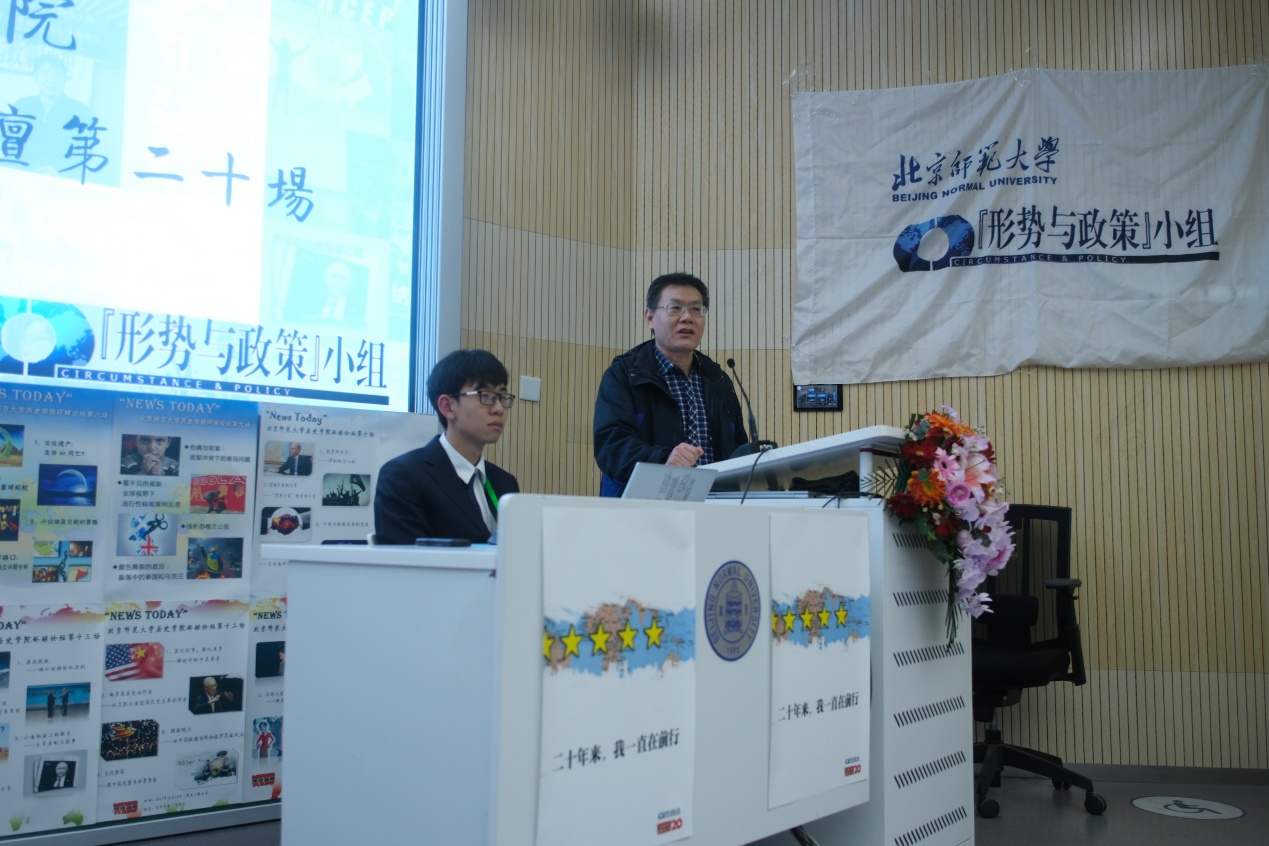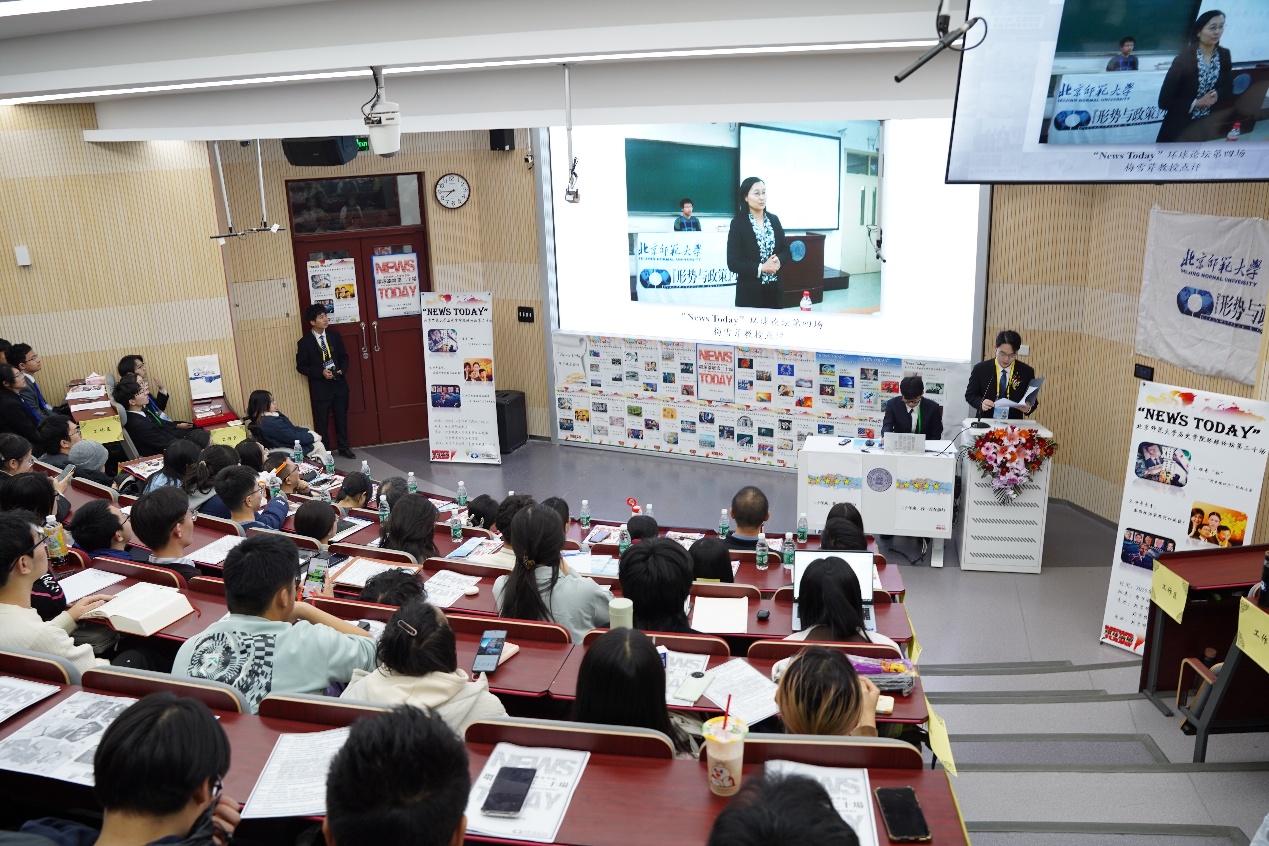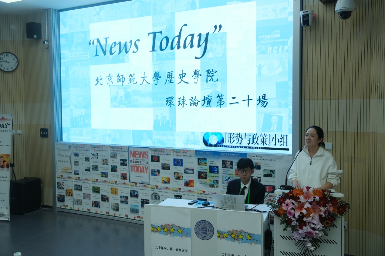 “News Today”北京师范大学历史学院环球论坛是历史学院依托“形势与政策”小组推出的一项特色精品活动,自2006年以来已连续举办二十场。活动中,学生自主选择感兴趣的国内国际时事话题进行分组主题展示,并邀请历史学院的教授学者进行专业点评。环球论坛拓宽了同学们的视野,培养了团队协作能力,也对外展示了北师大学生博古通今、胸怀天下的国际视野,在北师大乃至北京市高校范围内产生了广泛的影响。在论坛上表现出色的同学将有机会以“学生进课堂”的形式为全校本科生授课。十九年来,共有18个年级的同学先后54次登上讲台,受众已达数千人,为北京师范大学学生思想政治教育创新不断发挥积极作用。