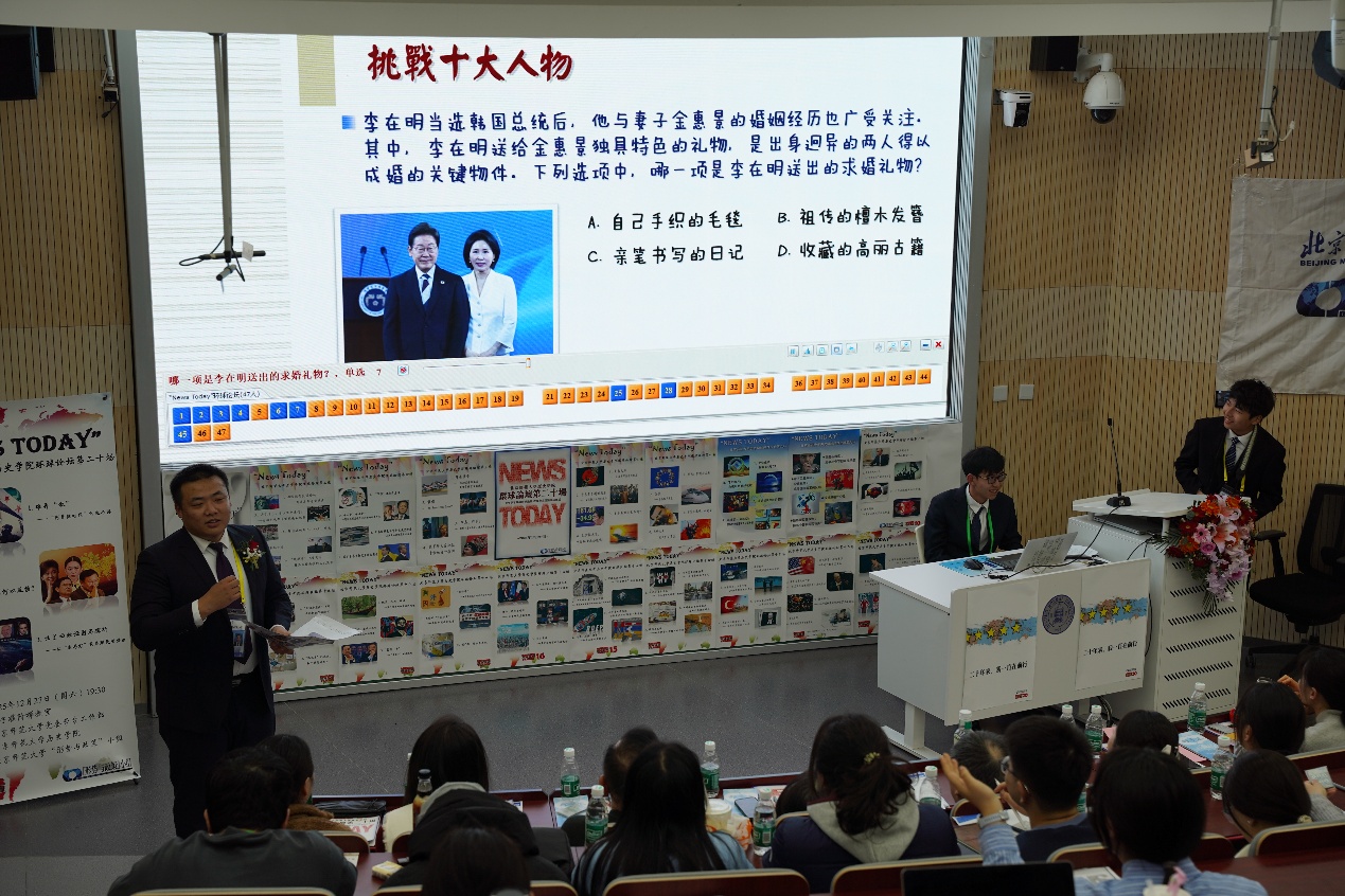 活动中,赵云慧老师揭晓了我校学生自主评选的“2025十大环球新闻人物”。展示期间还穿插进行了“人物迷踪”“环球二十年”“挑战十大人物”等知识性与趣味性兼备的时事知识互动环节,以寓教于乐的形式获得了在场观众的热烈反响。